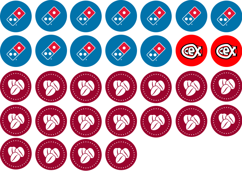 The Red Miracle franchise portfolio currently consists of 12 Dominos Pizza stores, 2 CEX stores, and 18 Costa Coffee franchises.